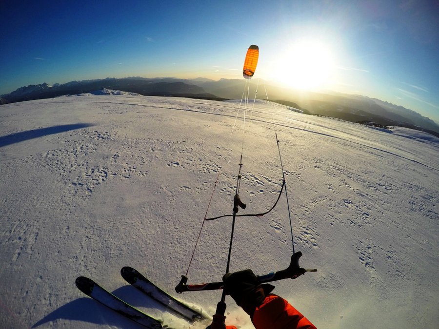 Die unberührte Hochebene des Rittner Horns mit seinen weitläufigen Hängen und konstantem Wind im Winter eignet sich perfekt zum Snowkiten.
